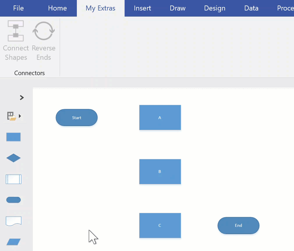 Alternately, the Connect Shapes command can be added to your ribbon and used to connect multiple shapes in the order they were selected.
