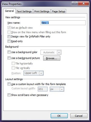 2. In the View Properties dialog box, change or specify the desired settings or options for the view, and then click OK.