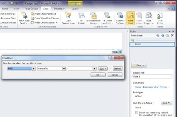 1. On the Data tab, in the Rules group, click Form Load.