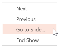 To go to any slide in the presentation, right-click the current slide, and select Go to Slide.
