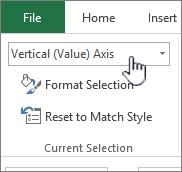 In a chart, select the value axis that you want to change, or do the following to select the axis from a list of chart elements: