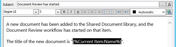 Now, when the workflow sends this email, it sends it to the addresses listed in the To and Cc fields of the Document Review item in the custom Recipients list. To change recipients, simply make the changes you want in the list item.