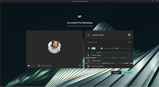 Meeting themes help foster a branded experience in meetings and events by incorporating visual assets (i.e., an organization’s logo, brand image, and color theme) into meeting screens and surfaces. Branded experiences aren’t currently supported in Microsoft Teams Rooms