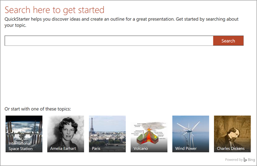 If you select QuickStarter, you’ll be prompted to search for the topic you’re researching. From there, QuickStarter will walk you through some steps to choose other topics that relate to your primary topic. For example, if you search for “water cycle,” you’ll have the option to explore related topics like “changes over time.” Choose a look for your slideshow and select Create.