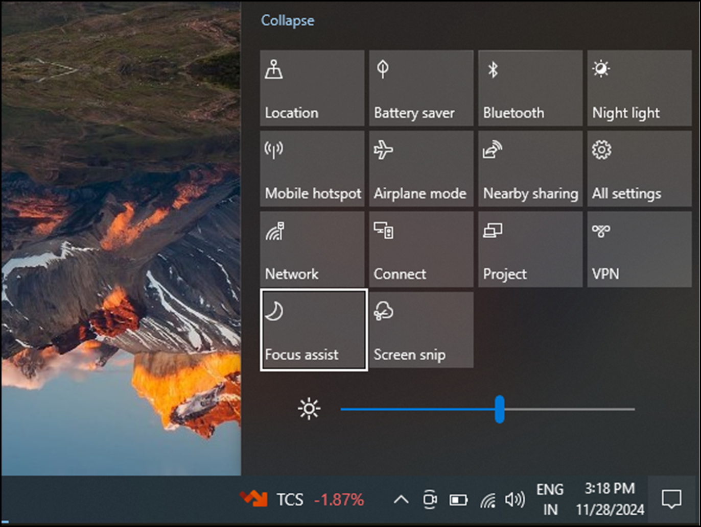 Tip: To quickly switch Do not disturb on or off, go to the taskbar and select the battery, network, or volume icon to open the Notification Center, then turn it on or off.